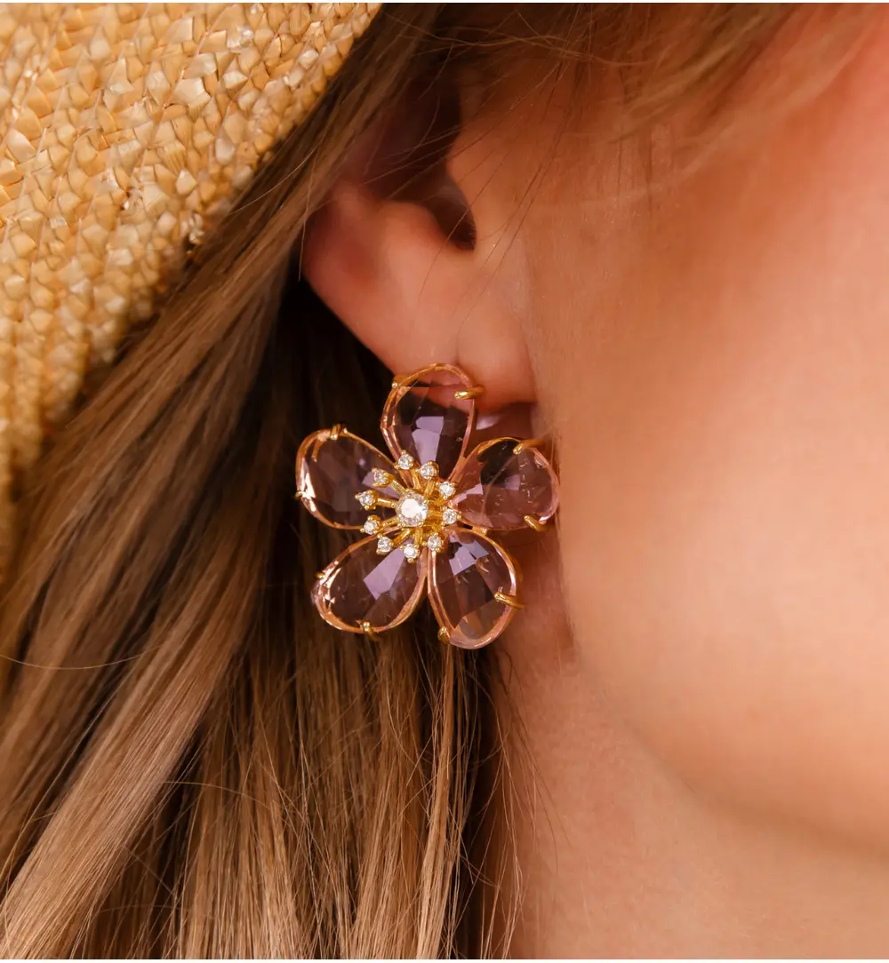 Koczyki kwiatki z różowymi kryształami to kwintesencja dziewczęcego uroku i wiosennej energii. Miękki odcień różu pięknie rozświetla cerę.
