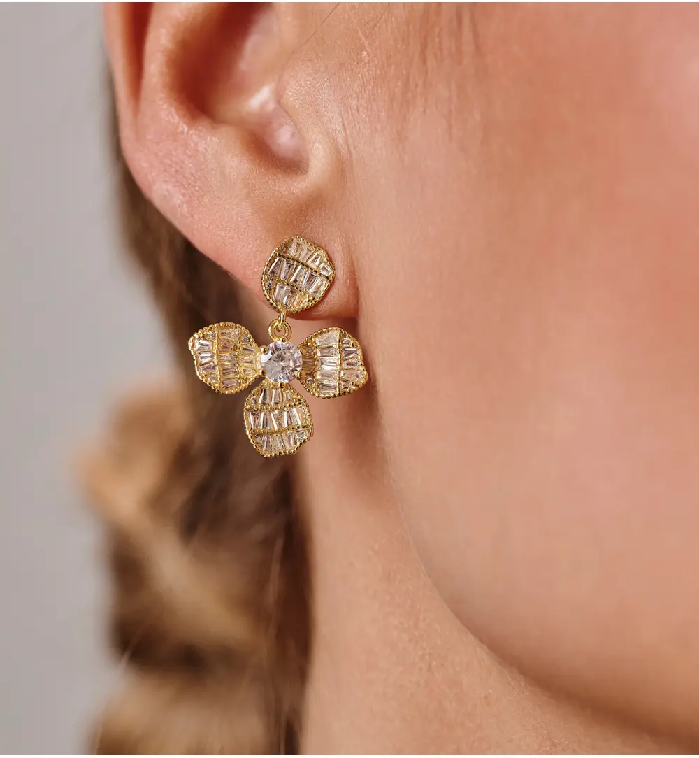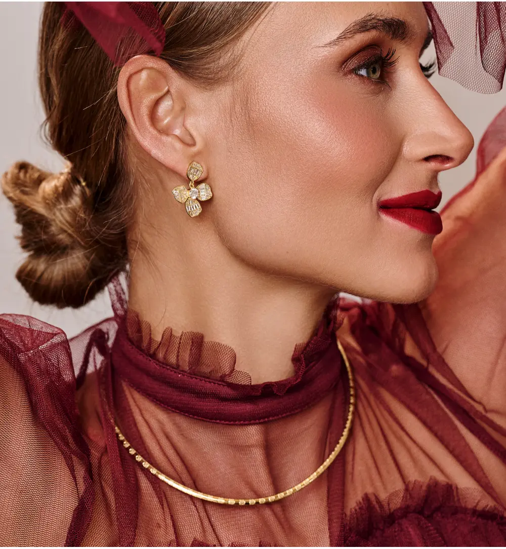 Kolczyki złote kwiaty z cyrkonią By Dziubeka to idealny dodatek na eleganckie przyjęcia, bale, wesela, rodzinne wydarzenia i wieczory, podczas których chcesz poczuć się wyjątkowo.