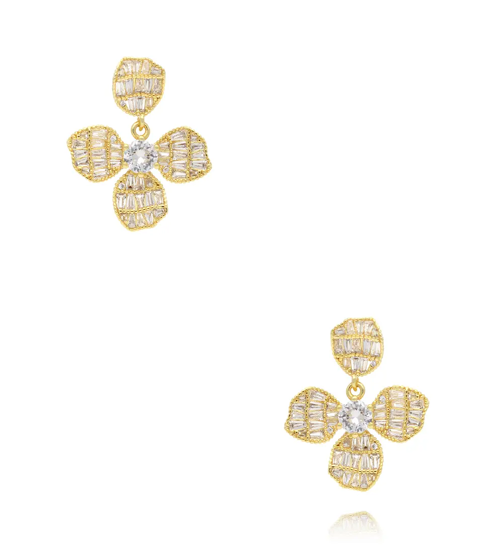 Te złote kolczyki w kształcie kwiatów zachwycają misternym wykonaniem, które przypomina biżuterię z pokazów haute couture. Delikatnie rzeźbione płatki zdobione cyrkoniami tworzą lśniący, trójwymiarowy efekt, a centralny kamień pięknie skupia światło, dodając całości wyjątkowego blasku. To biżuteria, która łączy w sobie artyzm, elegancję i kobiecość w luksusowym wydaniu.