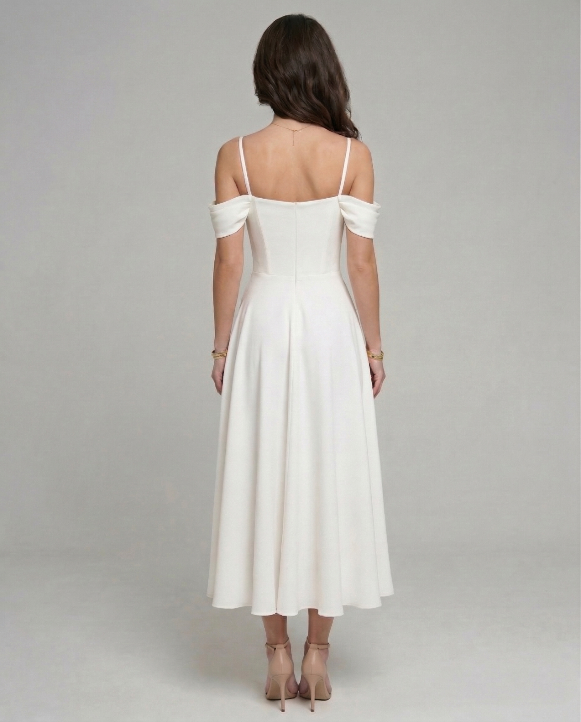 Sukienka Eli Midi Biała zachwyca swoją lekkością i subtelnym urokiem. Sprawdzi się zarówno na większe wyjścia, jak i bardziej kameralne okazje.
