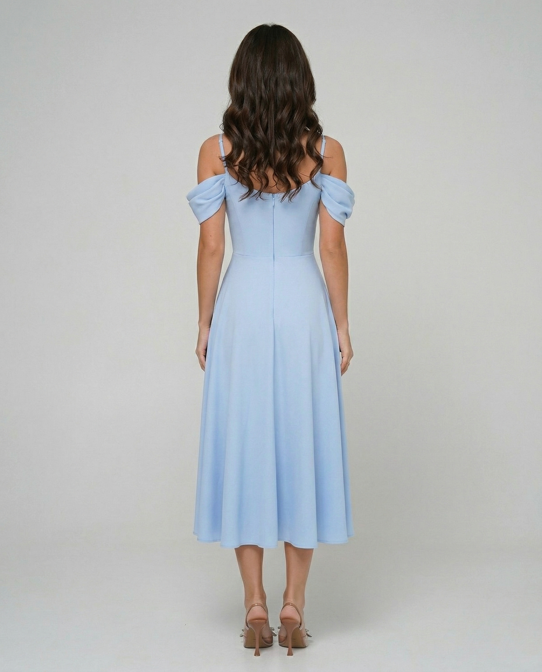 Sukienka Eli Midi Niebieska zachwyca swoją lekkością i subtelnym urokiem, tworząc idealną bazę do eleganckich stylizacji.
