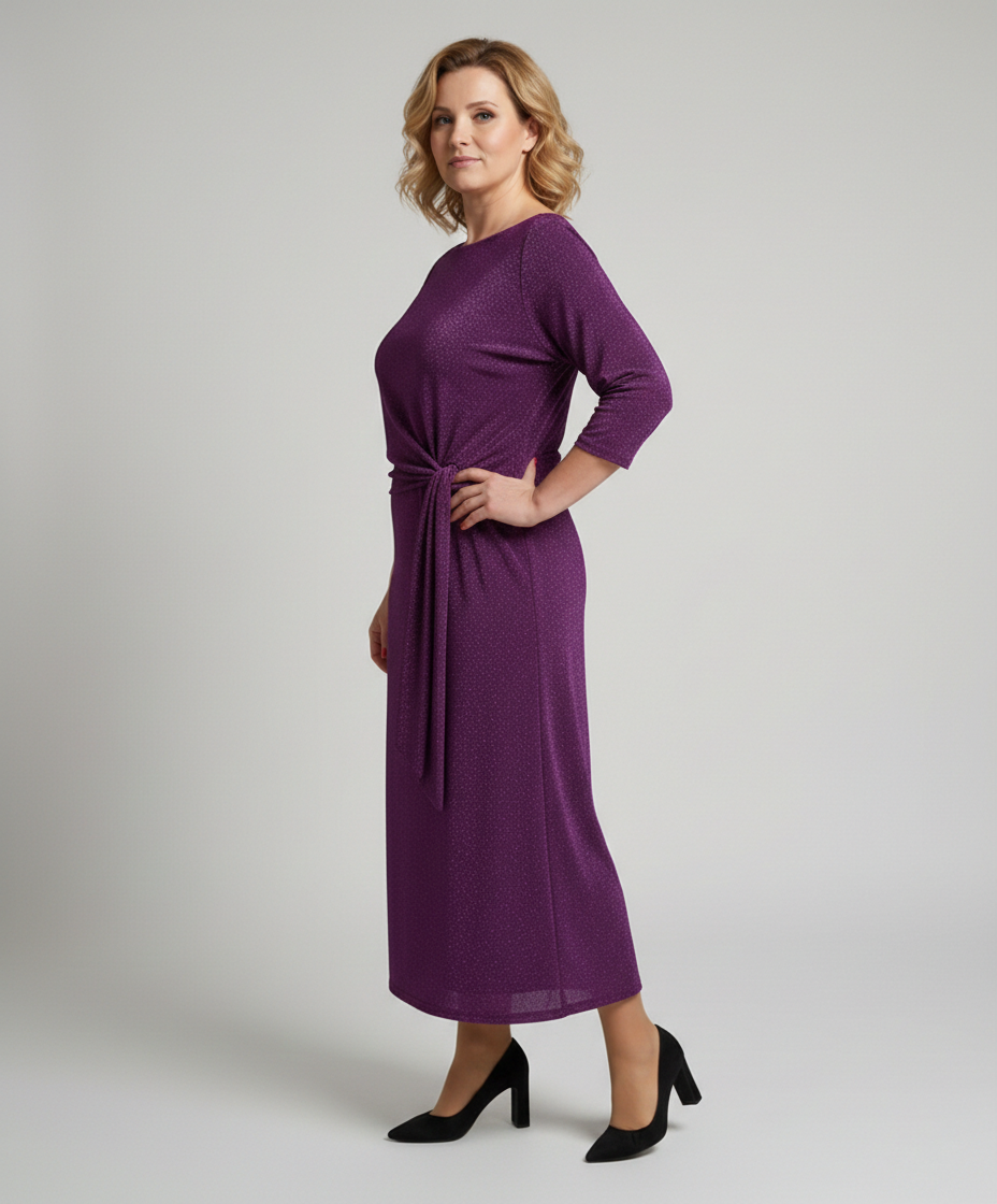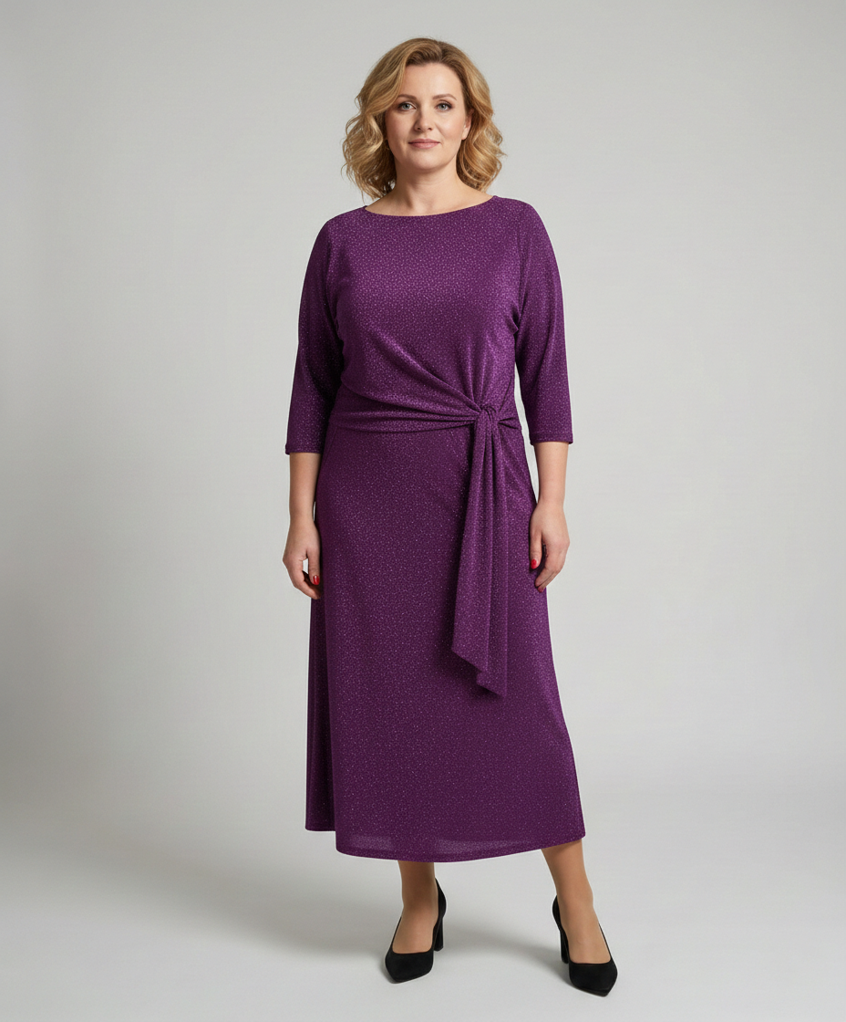 Sukienka Lacoria Fioletowa Połysk to klasyczna sukienka dla kobiet, które cenią elegancję, wygodę i nowoczesny styl z nutą blasku. Wybierz dopasowaną sukienkę z wiązaniem i stwórz stylizację, która podkreśli Twoją sylwetkę.