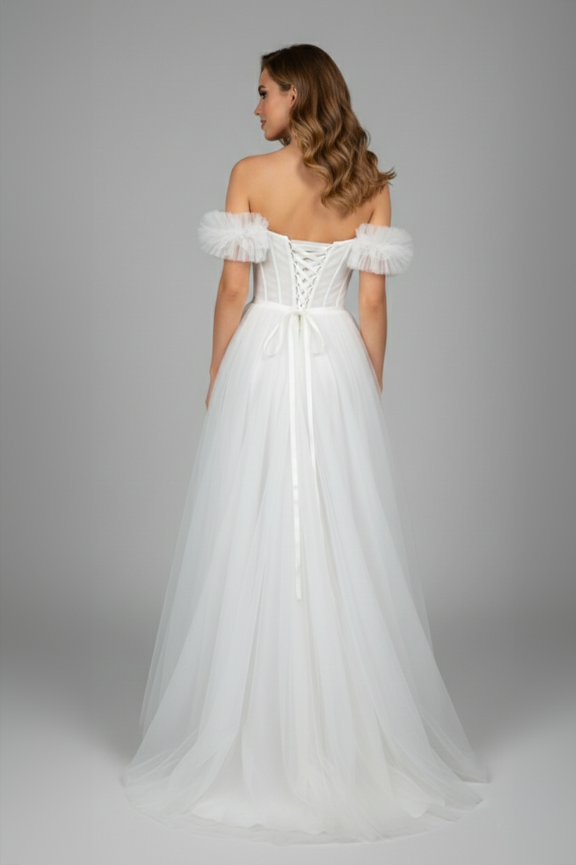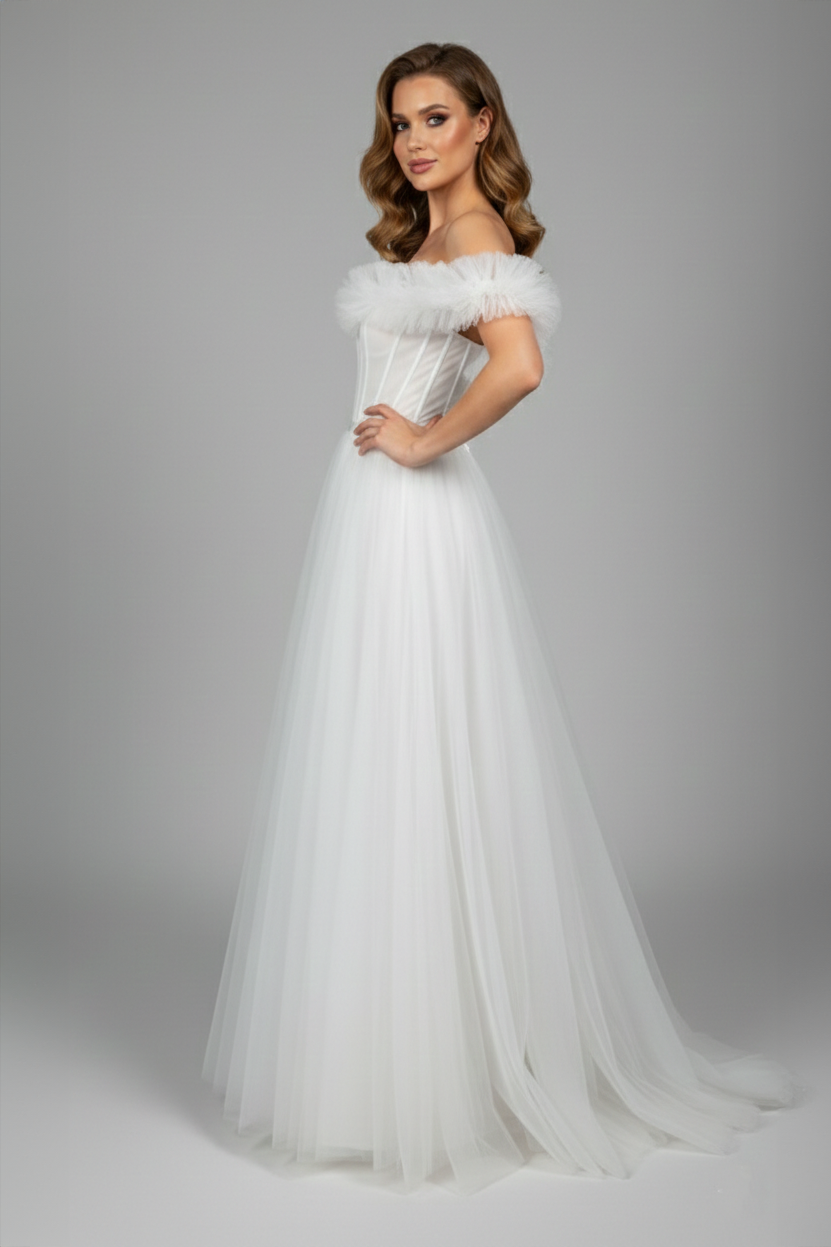 Sukienka Maxi Moni Biała z gorsetem, który nada idealny kształt twojej sylwetce. Doskonała na wielkie wyjścia takie jak studniówka, gala oraz bal.