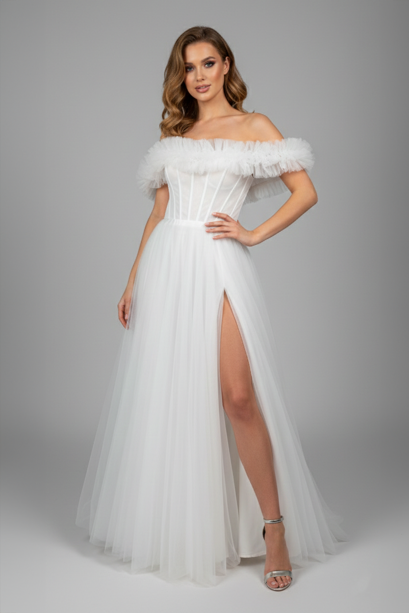 Sukienka Maxi Moni Biała sprawdzi się jako sukienka na wesele, studniówkę, bal, galę oraz inne eleganckie przyjęcia. To połącznie klasy, kobiecości i wyrazistego stylu w długości maxi.