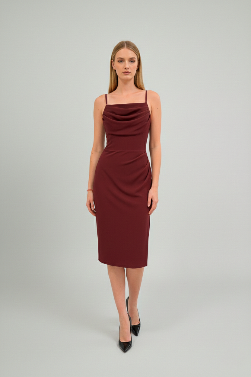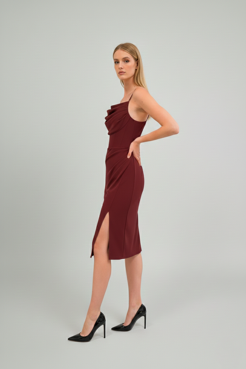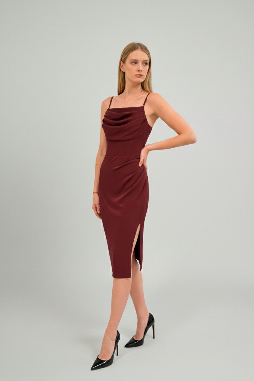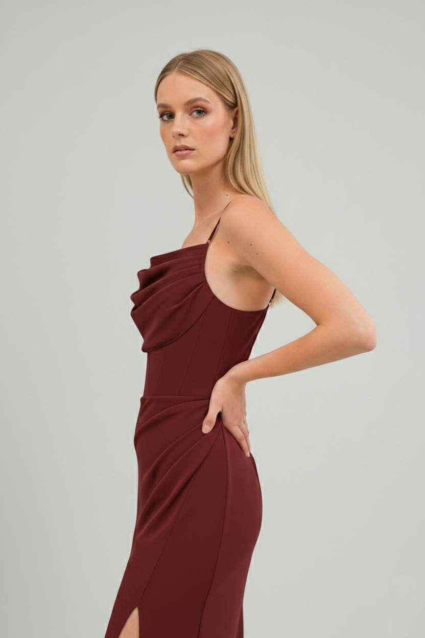 Sukienka Mini Elizabeth Bordowa to elegancka propozycja na wyjątkowe okazje. Podkreśla sylwetkę i dodaje kobiecego charakteru. Marszczenie na biuście pięknie modeluje dekolt.