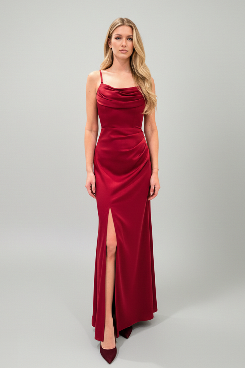 Sukienka Monika Bella Czerwona to elegancka sukienka maxi z efektownym rozporkiem i wiązaniem na plecach. Idealna na studniówkę jak i romantyczną kolację.